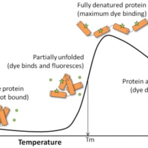 Environmentally sensitive fluorescent dyes can be used to monitor the temperature dependent unfolding of a protein. The protein’s melting temperature (Tm) is a reporter of the protein’s thermal stability.