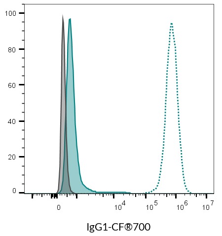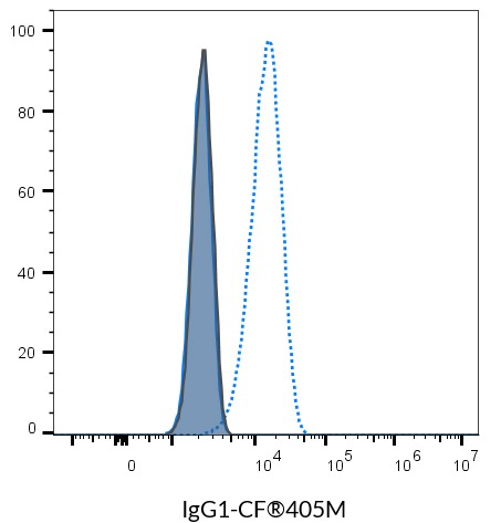 This is a non-reactive mouse monoclonal IgG1 kappa antibody labeled with one of our bright and photostable CF® Dyes and other labels. This antibody may serve as a control for a mouse monoclonal IgG1 antibody under identical experimental conditions. Biotium also carries mouse monoclonal isotype control antibodies for IgG2a Kappa (MG2a-53) and IgG2b Kappa (IGG1/1333).