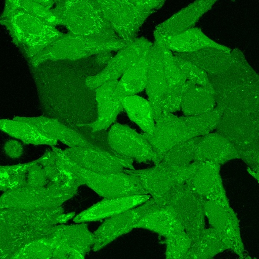 Like lipophilic membrane dyes, ViaFluor® SE labeling is also non-toxic, stable, and does not readily transfer between cells. But because ViaFluor® SE dyes uniformly label the cell interior, they are more useful for imaging morphology over time than lipophilic membrane dyes. Two different cell populations can be labeled with different ViaFluor® SE dyes, mixed together, and tracked in co-culture over time. Because labeling is covalent, the dyes have excellent tolerance for fixation and permeabilization. See four example workflows for different ViaFluor® SE applications below, and download the complete ViaFluor® SE Protocol.