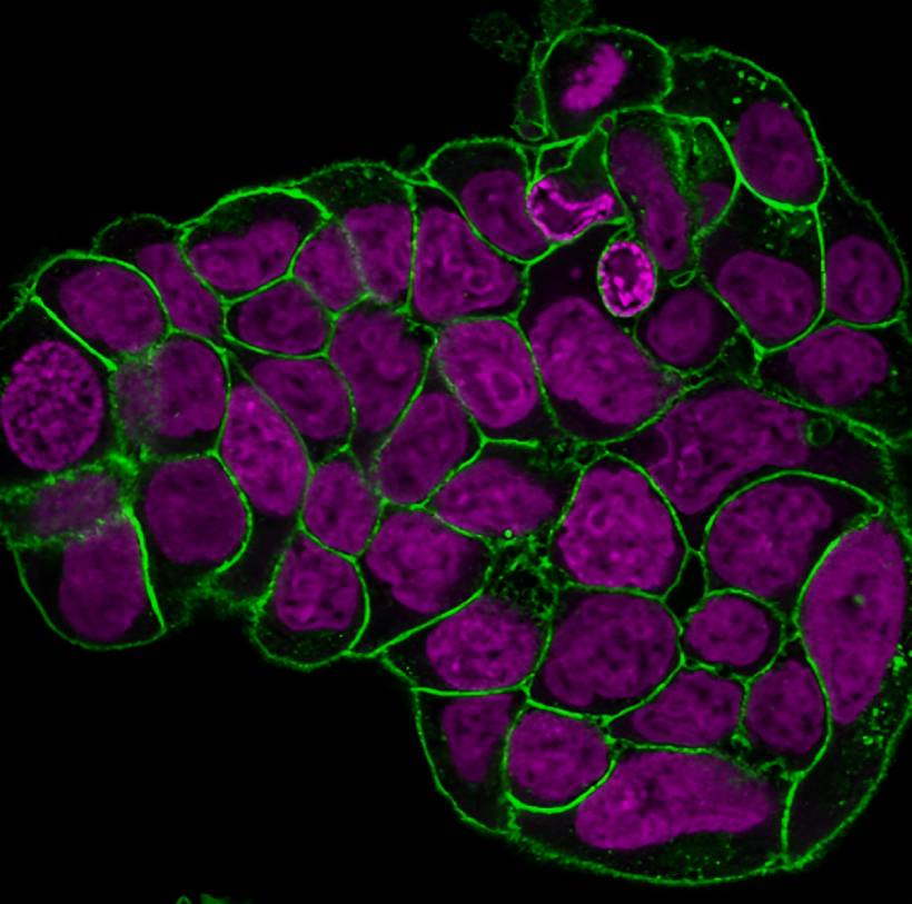 NucSpot® 470 is a cell membrane-impermeant green fluorescent DNA stain for nuclear counterstaining of fixed cells, or selective staining of dead cells.