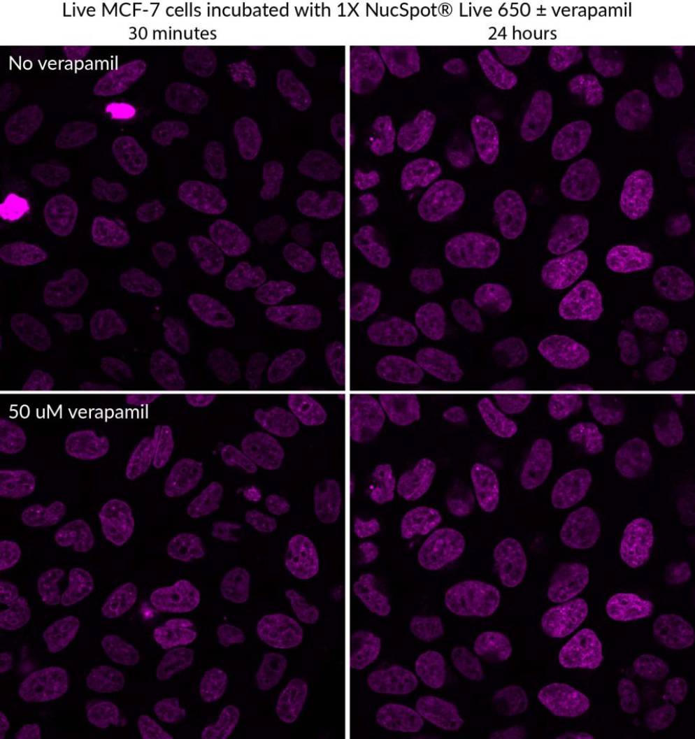 The dyes are supplied with a vial of the efflux pump inhibitor verapamil for optional use, which may increase probe retention and live cell staining in some cell types.