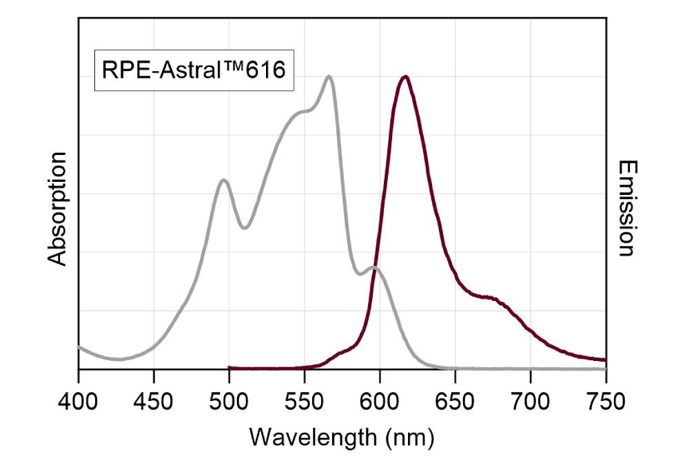 - Spectrally similar to: PE/Dazzle™ 594, PE-CF®594, and PE-DyLight® 594
