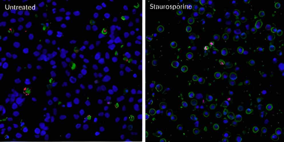 | Apoptotic, Necrotic & Healthy Cells Quantitation Kit Plus | 30066 | • CF®488A stains apoptotic cells green for the FITC channel • EthD-III stains dead cells red for the Cy® channel • Hoechst stains all cell nuclei blue for the DAPI channel • For microscopy |