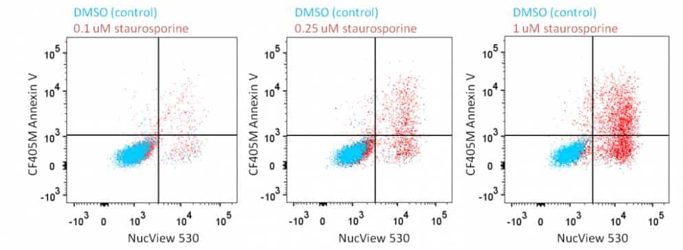 | Dual Apoptosis Assay with NucView® 488 and CF®640R Annexin V | 30073 | NucView® 488 and far-red fluorescent Annexin V apoptosis probe |