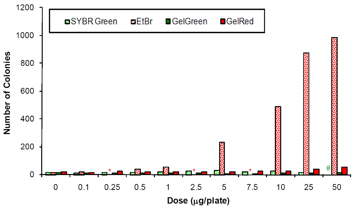 A number of ethidium bromide (EtBr) alternatives are marketed as being safe. In fact, many so-called “safe” gel stains contain dyes that are well known to bind DNA in living cells, with cytotoxic effects. GelRed® and GelGreen® are highly sensitive gel stains designed to be non-toxic and non-mutagenic by virtue of being cell membrane-impermeant, so they cannot enter living cells. Download our white paper to learn more.