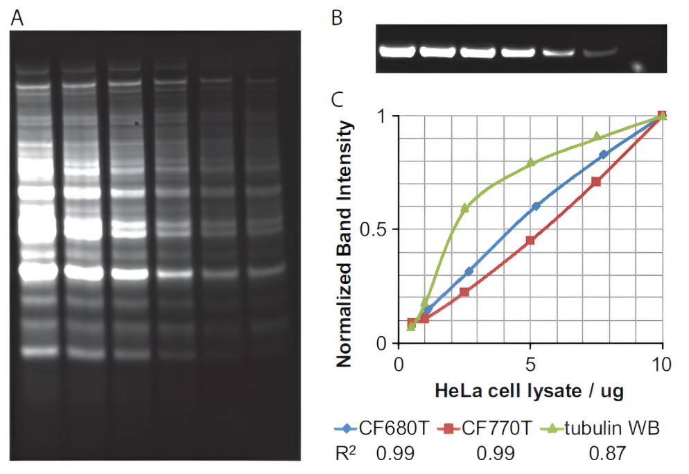 | VersaBlot™ CF®770T Total Protein Normalization Kit | 33026-T | 100 labelings | 764 / 787 nm | Amersham Typhoon™ 5 IR long channel LI-COR® Odyssey® 800 channel |
