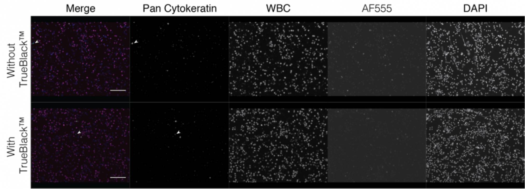 Reports have indicated that autofluorescence due to lipofuscin present in macrophages can also contribute to background signal…Addition of a TrueBlack® blocking step reduced autofluorescence particularly in the AF555 channel.